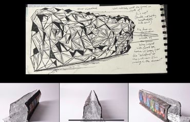 Inspired by collected textures, I incorporated some found elements into the piece such as the piece more geometrical then the rest of the piece. It has a groove down the middle, to create the effect I used a lino tool to create the indentation. I really enjoy the more vulnerable elements of the wax contrasting with the technical elements in there.